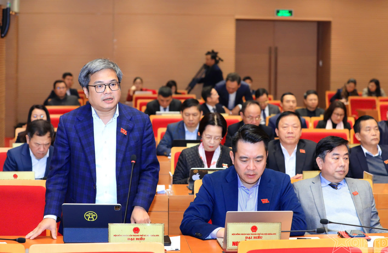 Đồng chí Dương Đức Tuấn, Phó Chủ tịch Thường trực UBND thành phố Hà Nội trình bày báo cáo tại kỳ họp.