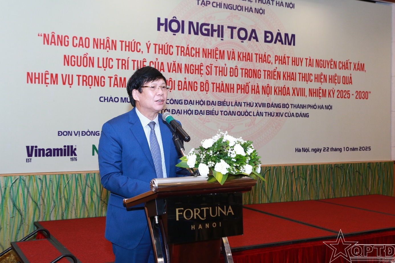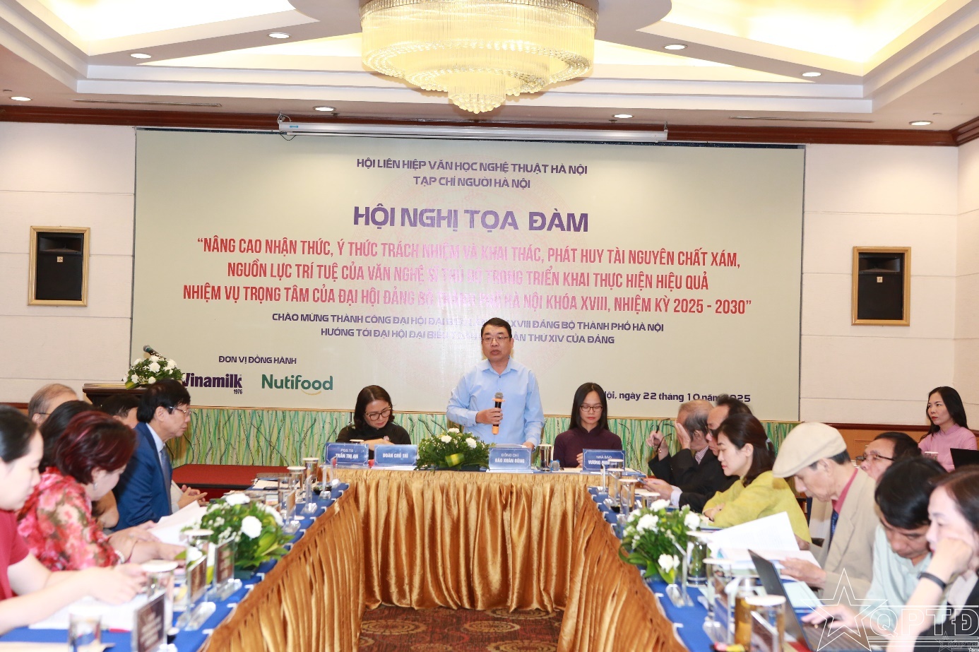 QPTĐ-Sáng 22/10, Tạp chí Người Hà Nội đã tổ chức chương trình Toạ đàm “Nâng cao nhận thức, ý thức trách nhiệm và khai thác, phát huy tài nguyên chất xám, nguồn lực trí tuệ của văn nghệ sĩ Thủ đô trong triển khai thực hiện hiệu quả nhiệm vụ trọng tâm của Đại hội Đảng bộ Thành phố Hà Nội khoá XVIII, nhiệm kỳ 2025-2030”.
