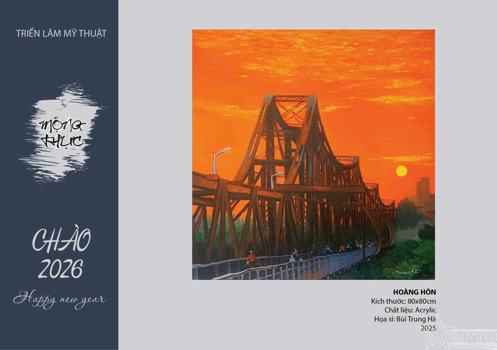 QPTĐ-Trong không khí hân hoan của những ngày đầu năm mới 2026, Hội Mỹ thuật Việt Nam trân trọng giới thiệu triển lãm mỹ thuật với chủ đề “Mộng Thực”. Đây được xem là món quà nghệ thuật đặc sắc dành tặng công chúng Thủ đô ngay trong dịp Tết Dương lịch. “Mộng Thực” không chỉ là một cuộc trưng bày tác phẩm thông thường mà còn là không gian gặp gỡ của 11 tâm hồn nghệ sĩ với những góc nhìn và cảm xúc riêng biệt. Tại đây, ranh giới giữa thực tại và giấc mơ được xóa nhòa, nhường chỗ cho những ý tưởng sáng tạo bay bổng và tự do.