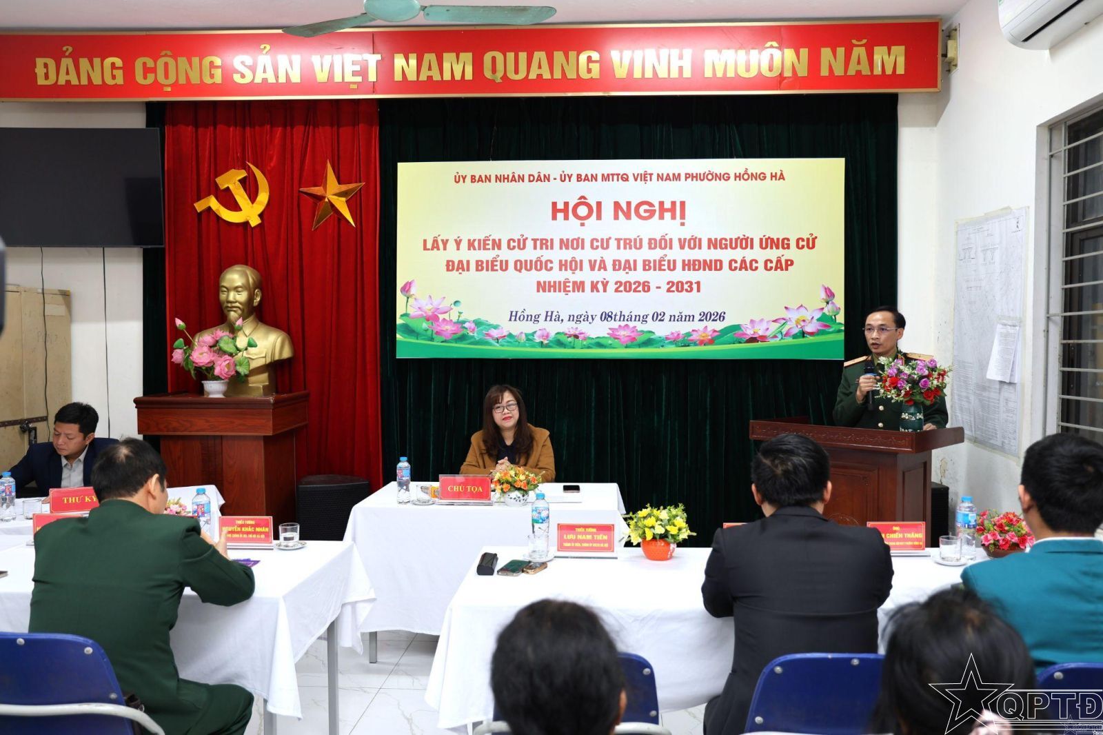 QPTĐ-Sáng 8-2, UBND, Ủy ban MTTQ Việt Nam phường Hồng Hà (thành phố Hà Nội) đã tổ chức Hội nghị lấy ý kiến nhận xét và tín nhiệm của cử tri nơi cư trú đối với người ứng cử đại biểu Quốc hội khoá XVI (nhiệm kỳ 2026-2031), đại biểu HĐND các cấp nhiệm kỳ 2026-2031.