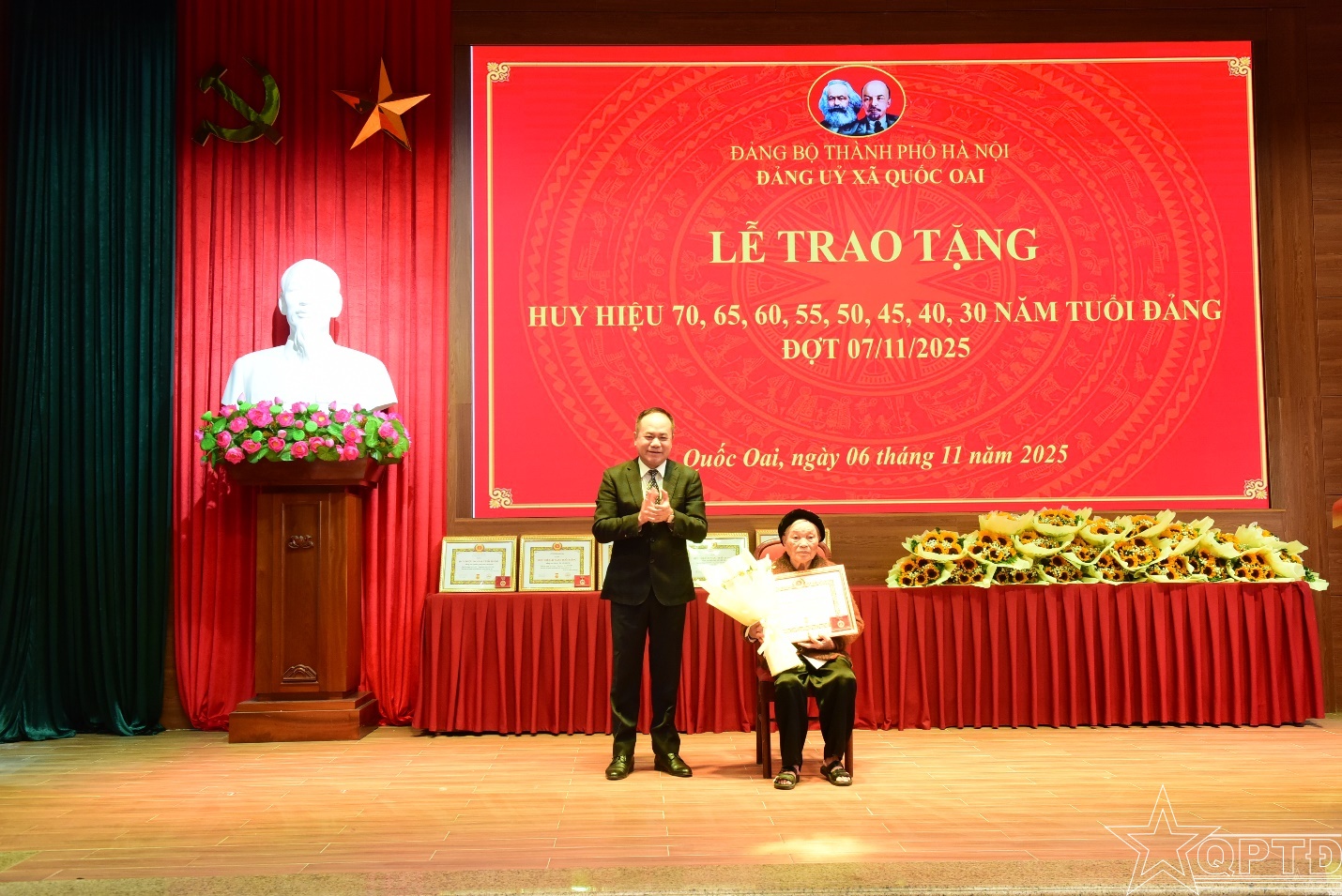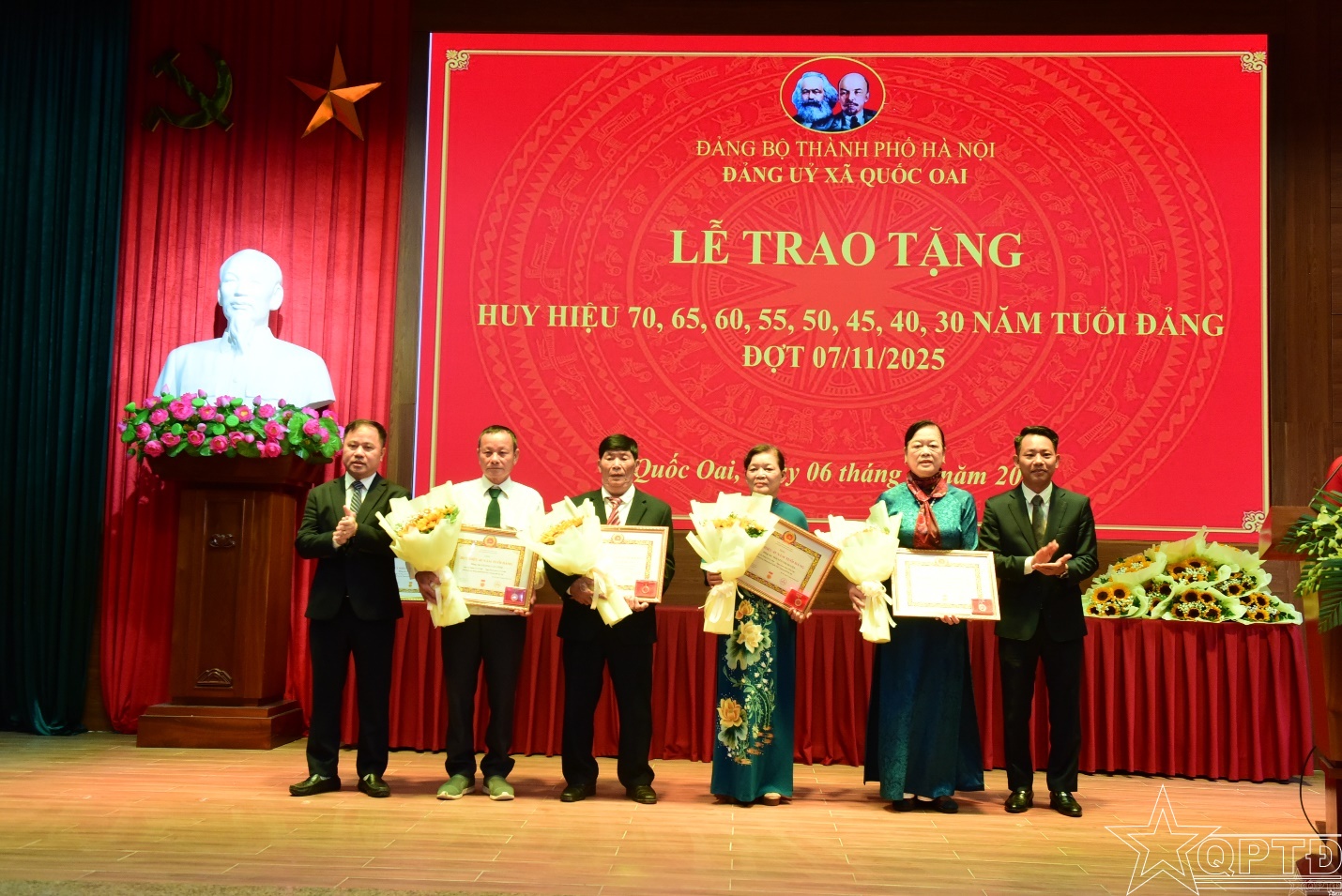 Theo Quyết định của Ban Thường vụ Thành ủy Hà Nội, trong đợt này, Đảng bộ xã Quốc Oai có 26 đảng viên được tặng Huy hiệu Đảng, gồm: 1 đồng chí 70 năm tuổi Đảng, 1 đồng chí 65 năm, 7 đồng chí 60 năm, 1 đồng chí 55 năm, 2 đồng chí 50 năm, 5 đồng chí 45 năm, 5 đồng chí 40 năm và 4 đồng chí 30 năm tuổi Đảng. Đây là phần thưởng cao quý, thể hiện sự trân trọng, ghi nhận của Đảng đối với quá trình rèn luyện, cống hiến không ngừng của các đảng viên-những người đã dành trọn tâm huyết, trí tuệ và cả tuổi thanh xuân của mình cho sự nghiệp đấu tranh giải phóng dân tộc, xây dựng và bảo vệ Tổ quốc. Đặc biệt có đồng chí đảng viên Nguyễn Thị Toàn, sinh ngày 15/8/1938, quê quán xã Quốc Oai, Hà Nội, vào Đảng ngày 25/11/1955, hiện đang sinh hoạt tại chi bộ thôn Phúc Đức, Đảng bộ xã Quốc Oai, nguyên là chi hội phó Phụ nữ xã, được trao Huy hiệu 70 năm tuổi Đảng.