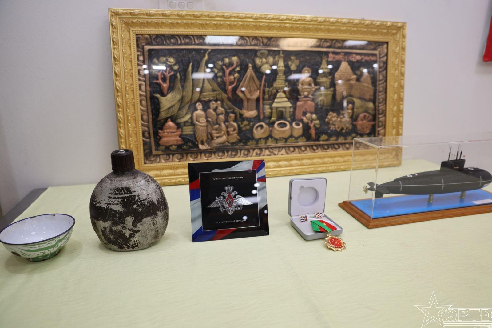 Bên cạnh đó, các hiện vật khác được xét duyệt chủ yếu là những tặng phẩm ngoại giao quân sự, biểu trưng cho tình hữu nghị, hợp tác quốc tế của Quân đội nhân dân Việt Nam, cụ thể: Mô hình tàu ngầm 182-Hà Nội do Đoàn cán bộ Lữ đoàn Tàu ngầm 189 trao tặng; Huân chương Bảo vệ Tổ quốc hạng Nhất được Nhà nước trao tặng Lực lượng vũ trang Thủ đô nhân kỷ niệm 75 năm Ngày truyền thống; Bức tranh đồng giới thiệu văn hóa và danh lam thắng cảnh Lào từ Đoàn cán bộ Cục Quân huấn, Cục Quân sự địa phương Bộ Tổng tham mưu Quân đội nhân dân Lào; Huy hiệu cài áo (khuy cài hình lá cờ Cuba) từ Quân khu La Habana, Bộ các Lực lượng vũ trang cách mạng Cuba; Biểu tượng Bộ Quốc phòng Liên bang Nga do Đoàn Bộ Tư lệnh Quân khu miền Tây (Nga) trao tặng.