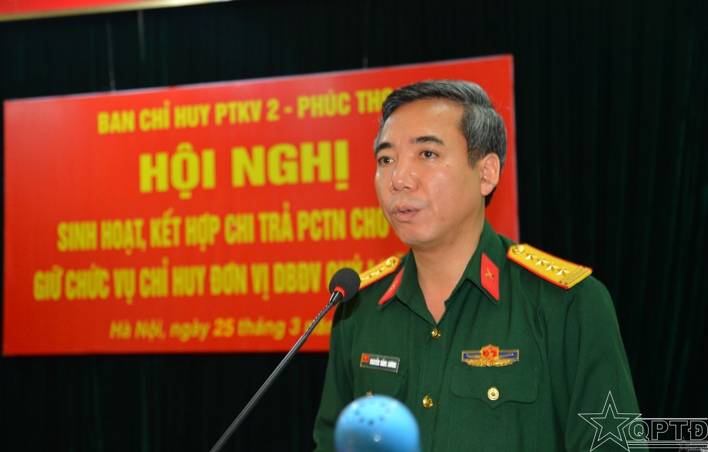 Phát biểu chỉ đạo tại hội nghị, Đại tá Nguyễn Hồng Dương ghi nhận, đánh giá cao tinh thần trách nhiệm của các cơ quan, đơn vị trong tổ chức, quản lý, xây dựng lực lượng dự bị động viên thời gian qua. Đồng chí Phó Chủ nhiệm Chính trị Bộ Tư lệnh Thủ đô Hà Nội nhấn mạnh: Thời gian tới Ban chỉ huy PTKV2-Phúc Thọ cần chủ động làm tốt công tác phối hợp với các đơn vị nhận nguồn. Ban CHQS các xã, phường trong Khu vực phòng thủ tập trung, trước hết duy trì nghiêm nền nếp sinh hoạt chính trị, bảo đảm chặt chẽ, đúng quy định. Trong quá trình tổ chức, phải xác định rõ không làm hình thức, không nhận thay, làm thay; đặc biệt chú trọng nắm bắt tư tưởng của đội ngũ chỉ huy, chính trị viên, bảo đảm sự ổn định, thống nhất trong toàn đơn vị. Chủ động tăng cường phối hợp trong công tác xây dựng kế hoạch, tổ chức huấn luyện, diễn tập, huy động lực lượng, sẵn sàng xử lý các tình huống có thể xảy ra, nhất là trong thực hiện nhiệm vụ phòng chống thiên tai, bão lũ, tìm kiếm cứu nạn, bảo đảm chất lượng, hiệu quả, an toàn. Đồng chí Phó Chủ nhiệm Chính trị Bộ Tư lệnh Thủ đô Hà Nội cũng yêu cầu các đơn vị thực hiện tốt công tác rà soát, đề nghị bổ nhiệm, miễn nhiệm, thăng quân hàm đối với sĩ quan dự bị theo đúng quy định, bảo đảm kịp thời, chặt chẽ, tạo động lực phấn đấu cho quân nhân dự bị, sẵn sàng nhận và hoàn thành tốt nhiệm vụ.