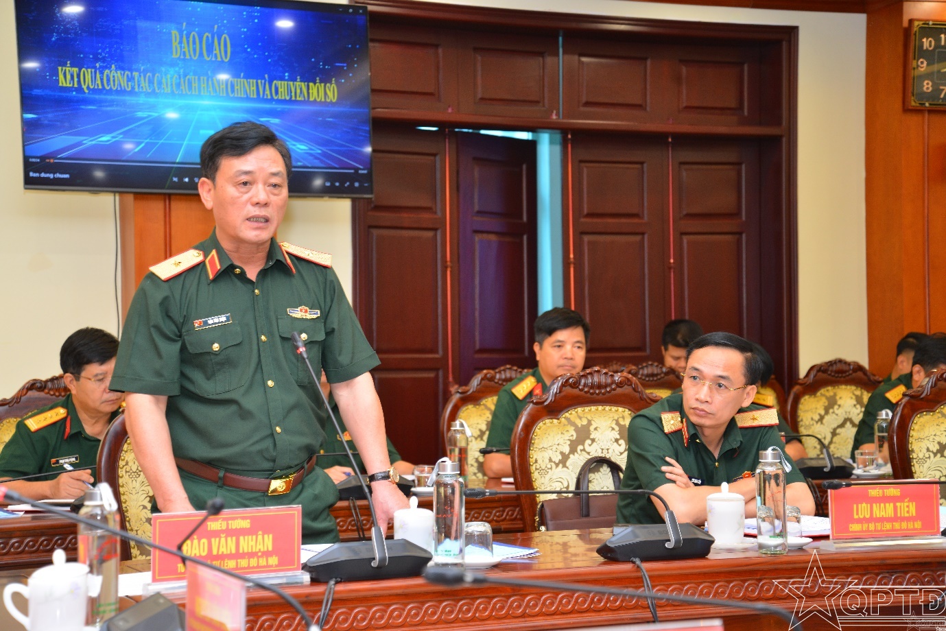Thiếu tướng Đào Văn Nhận, Ủy viên Ban Thường vụ Thành ủy, Tư lệnh Bộ Tư lệnh báo cáo làm rõ thêm kết quả Bộ Tư lệnh đạt được trong công tác cải cách hành chính, chuyển đổi số.