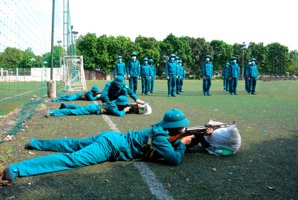 Dân quân năm thứ nhất quận Hoàng Mai trong giờ huấn luyện.
