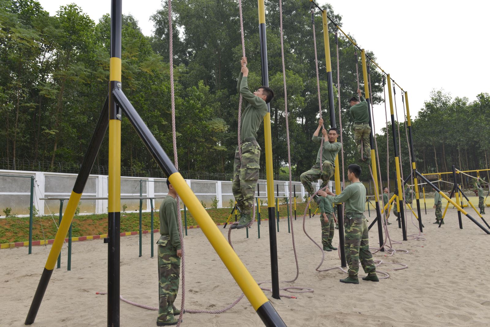 Đến Trung đoàn 692, Sư đoàn Bộ binh 301, chúng tôi rất ấn tượng với những bãi tập thể lực tổng hợp của đơn vị, thu hút đông đảo cán bộ, chiến sĩ luyện tập hằng ngày. Hệ thống thiết bị tập đa dạng, phong phú như: bộ tạ, bãi tập xà đơn, xà kép, hố nhảy xa, cầu chạy bập bềnh, nấm nhảy, rào chui, nhóm dây leo ngang và dây leo đứng… Thượng úy Phùng Tiến Dũng, Trợ lý Tác huấn Trung đoàn cho biết: “Hiện nay, Trung đoàn có 3 bãi tập thể lực tổng hợp ở các Tiểu đoàn 4, 5, 6. Mỗi bãi tập có chiều dài là 37m, chiều rộng 27m, thiết kế theo tiêu chuẩn quy định của Bộ Quốc phòng, nhiều người có thể tập cùng một lúc. Mỗi một hệ thống tập có những tác dụng khác nhau giúp bộ đội phát triển thể lực và nâng cao kỹ năng vận động”.
