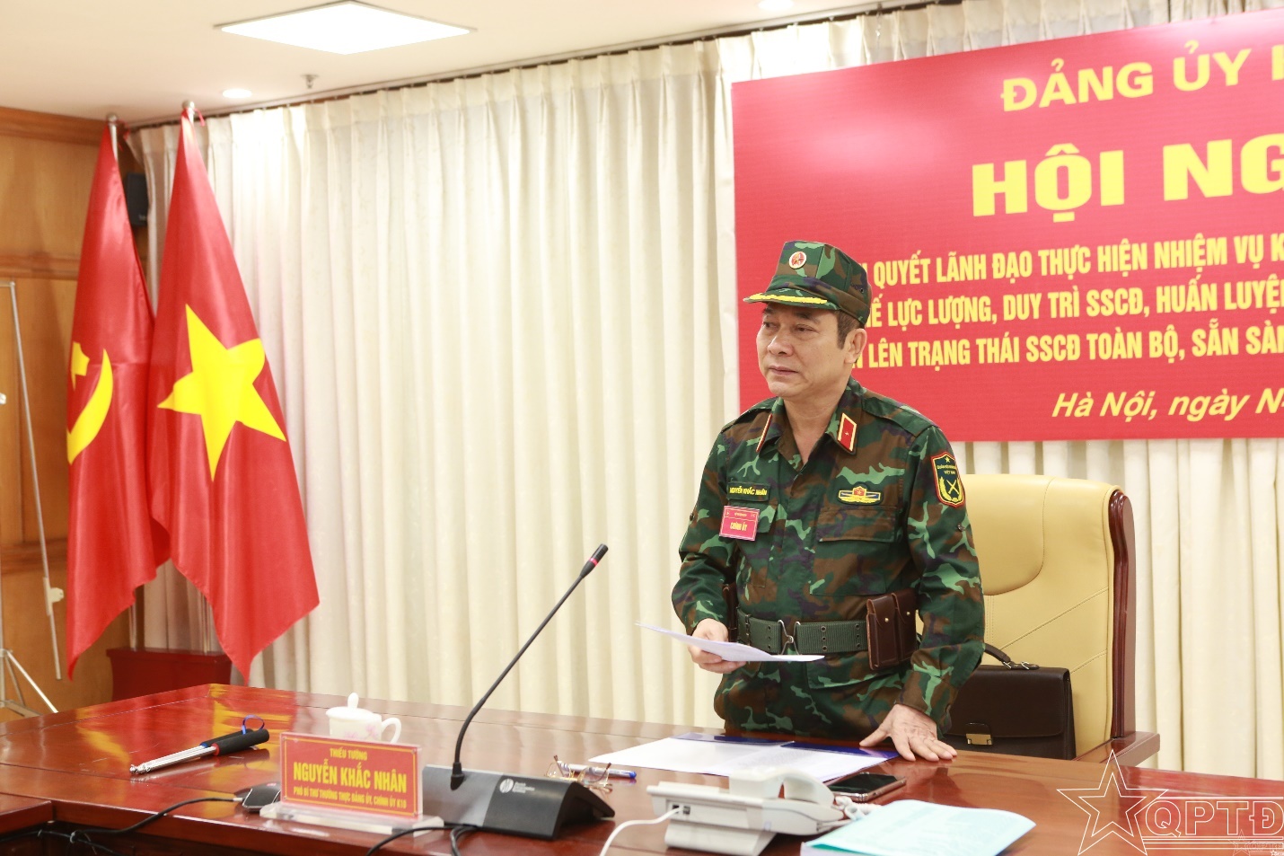 Thiếu tướng Nguyễn Khắc Nhân, Phó Chính uỷ Bộ Tư lệnh Thủ đô Hà Nội quán triệt các nội dung.