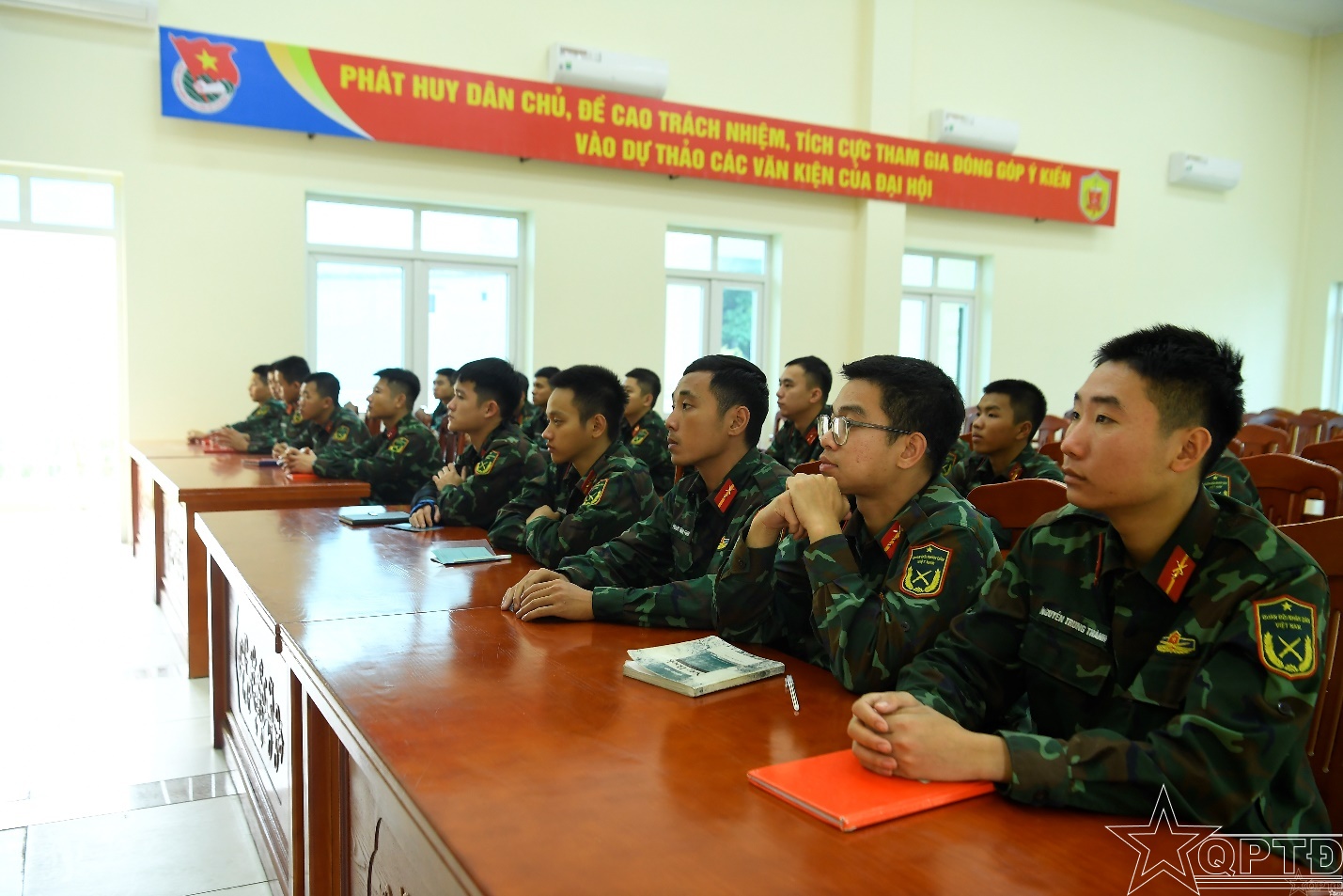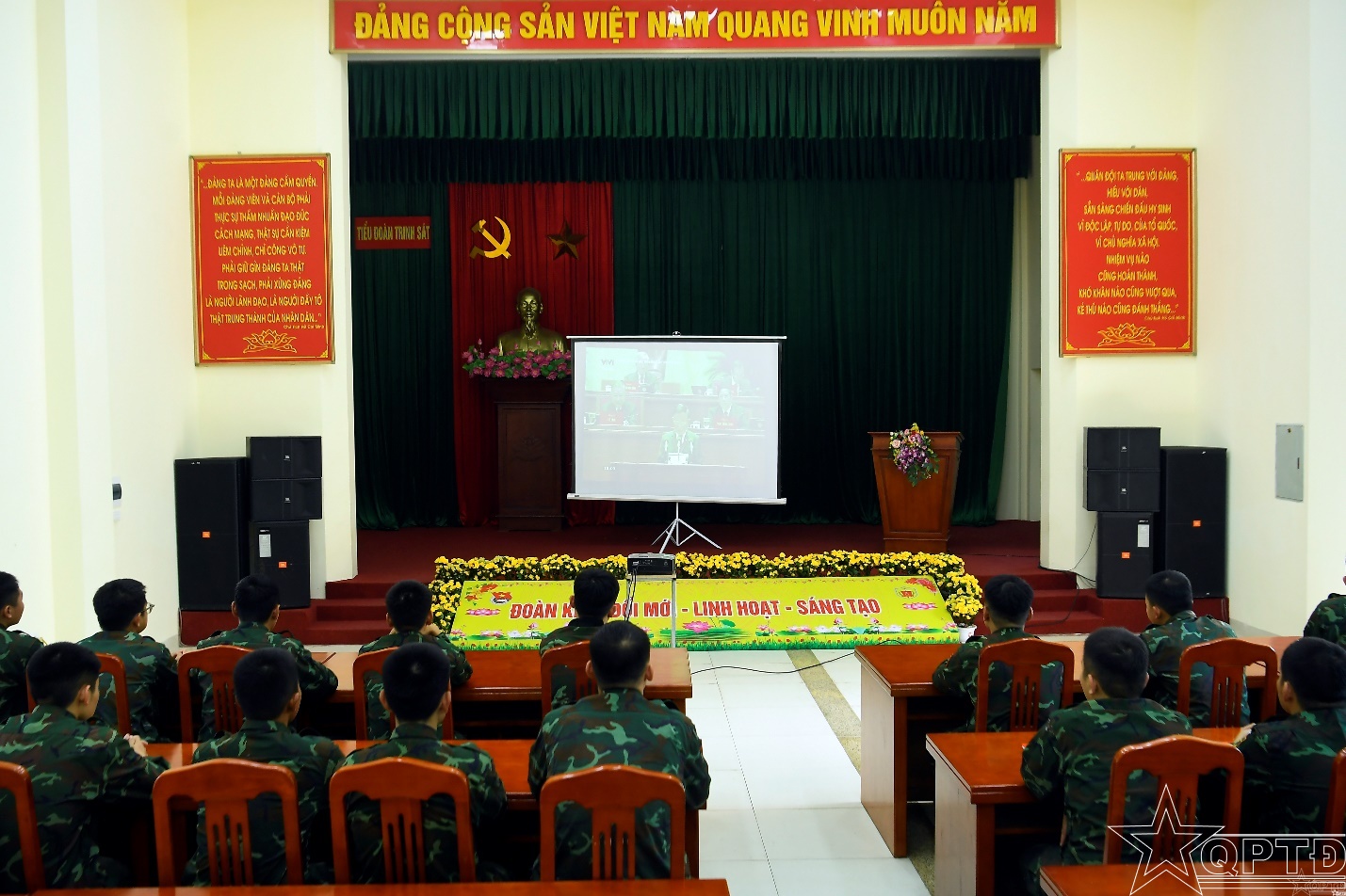 Cán bộ, chiến sĩ Tiểu đoàn Trinh sát xem khai mạc Đại hội Đảng toàn quốc lần thứ XIV.