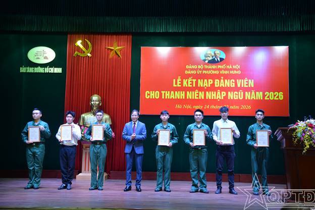 QPTĐ-Sáng 24-2, tại Bảo tàng Đường Hồ Chí Minh, phường Vĩnh Hưng đã tổ chức Lễ kết nạp Đảng và gặp mặt, tặng quà cho công dân chuẩn bị lên đường nhập ngũ năm 2026.