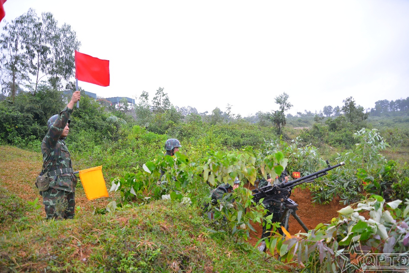 Khẩu đội súng máy phòng không 12,7mm của Ban CHPTKV2-Phúc Thọ thực hành bắn chế áp.