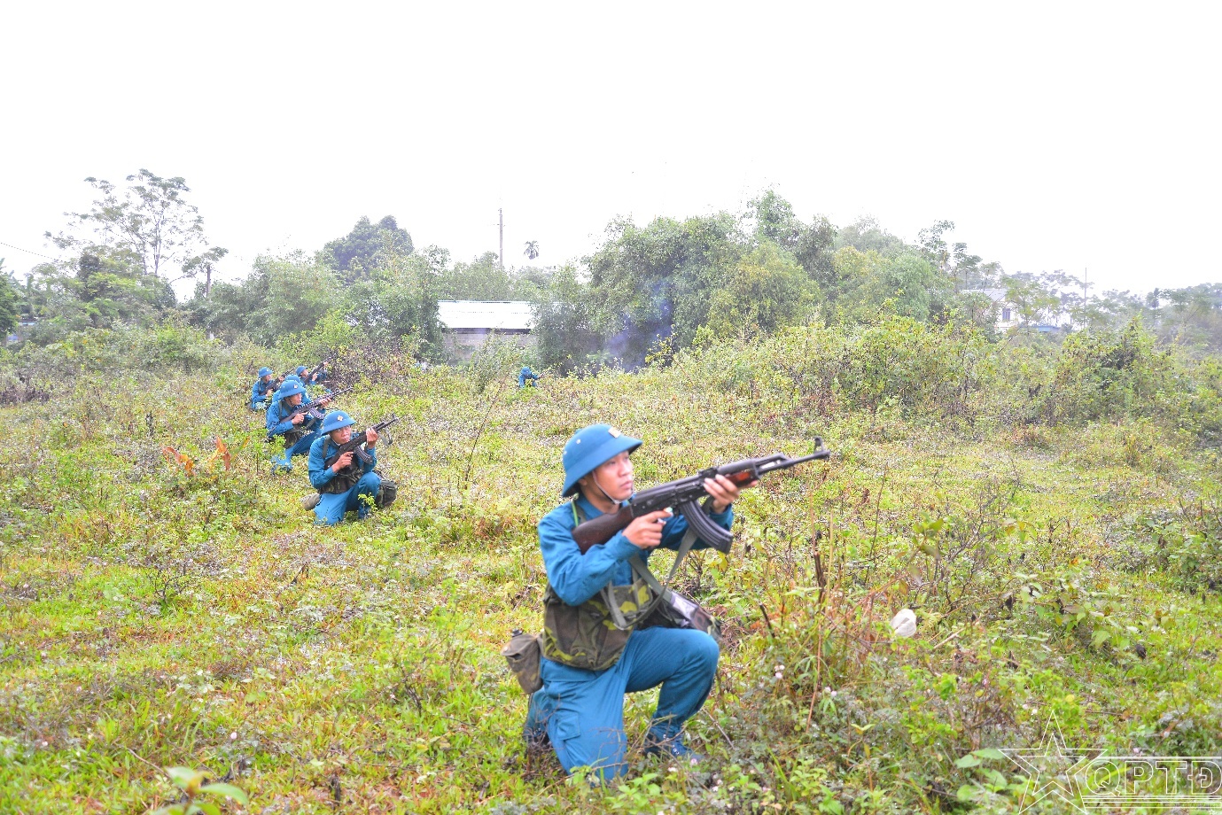 Trung đội dân quân xã Thạch Thất thực hành tác chiến tạo thế.