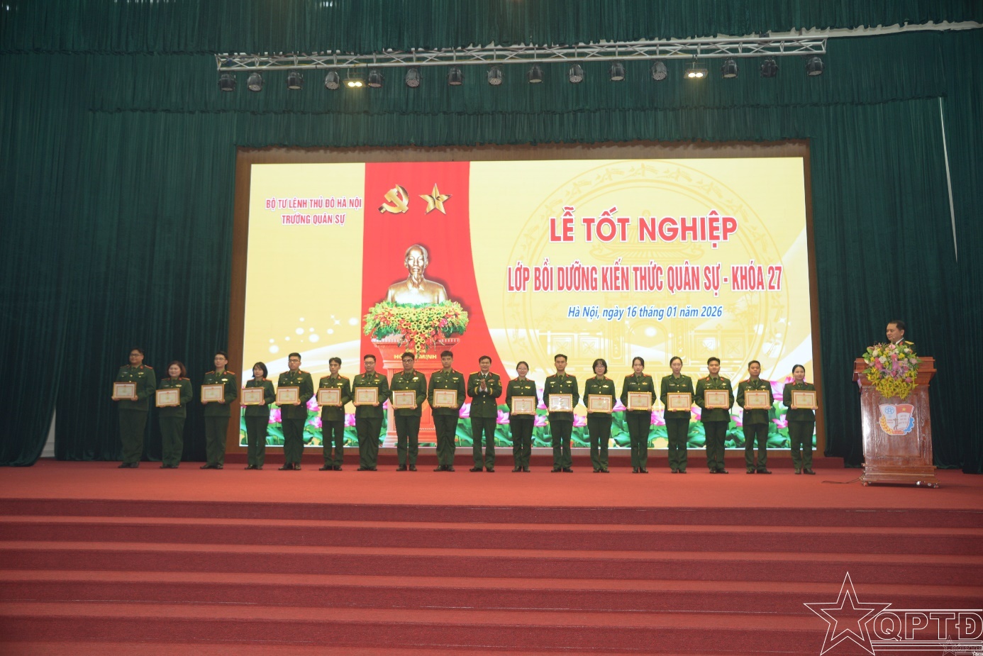 QPTĐ-Sáng 16-1, Trường Quân sự Bộ Tư lệnh Thủ đô Hà Nội đã tổ chức Lễ tốt nghiệp cho 82 học viên Lớp Bồi dưỡng kiến thức quân sự-Khóa 27.