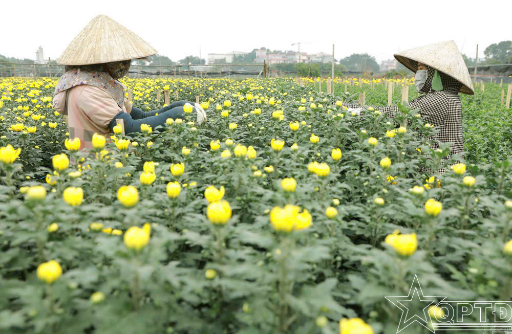 Bà Trương Thị Hằng, người có 20 năm gắn bó với nghề trồng hoa cho biết, vụ hoa Tết thường bắt đầu cho thu hoạch vào khoảng ngày 26-27 tháng Chạp, song kết quả được hay mất phụ thuộc rất lớn vào thời tiết. Thời gian này, người trồng hoa đang làm công đoạn tỉa nụ, tức là tỉa bỏ bớt để cây tập trung dinh dưỡng, sau này hoa to và đều hơn. Bà chia sẻ, một lứa cúc phải trồng từ cuối tháng 8, đầu tháng 9 âm lịch mới kịp cho vụ Tết. Nhưng trồng hoa thì không thể nói trước được, còn phụ thuộc nhiều vào thời tiết và cả giá cả thị trường. Gia đình bà có hơn một sào ruộng trồng hoa, song năm nay gặp đợt ngập úng kéo dài khiến nhiều diện tích bị mất trắng. Nghề trồng hoa vất vả và nhiều rủi ro, chỉ hi vọng vào tình hình thời tiết và giá cả thị trường.