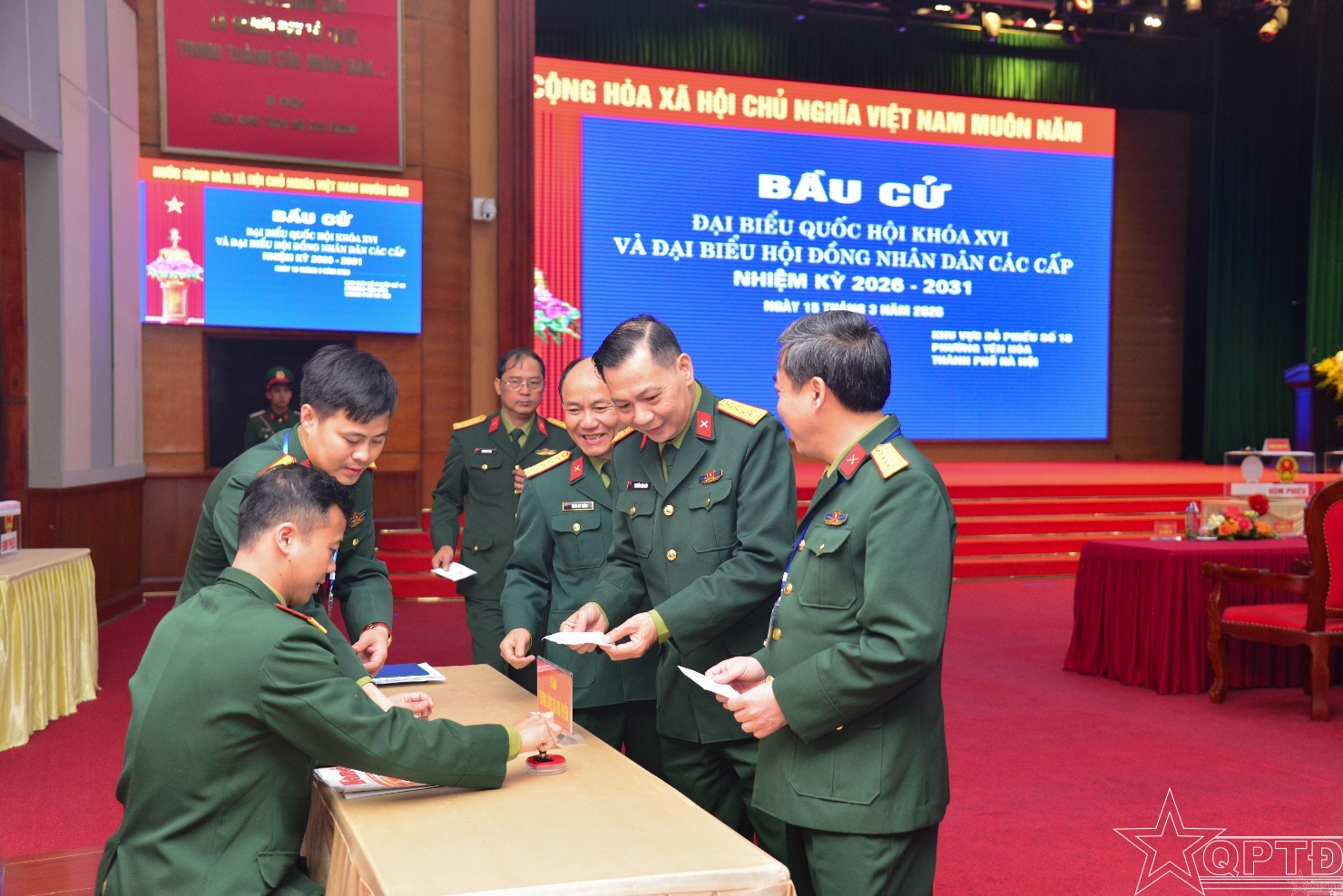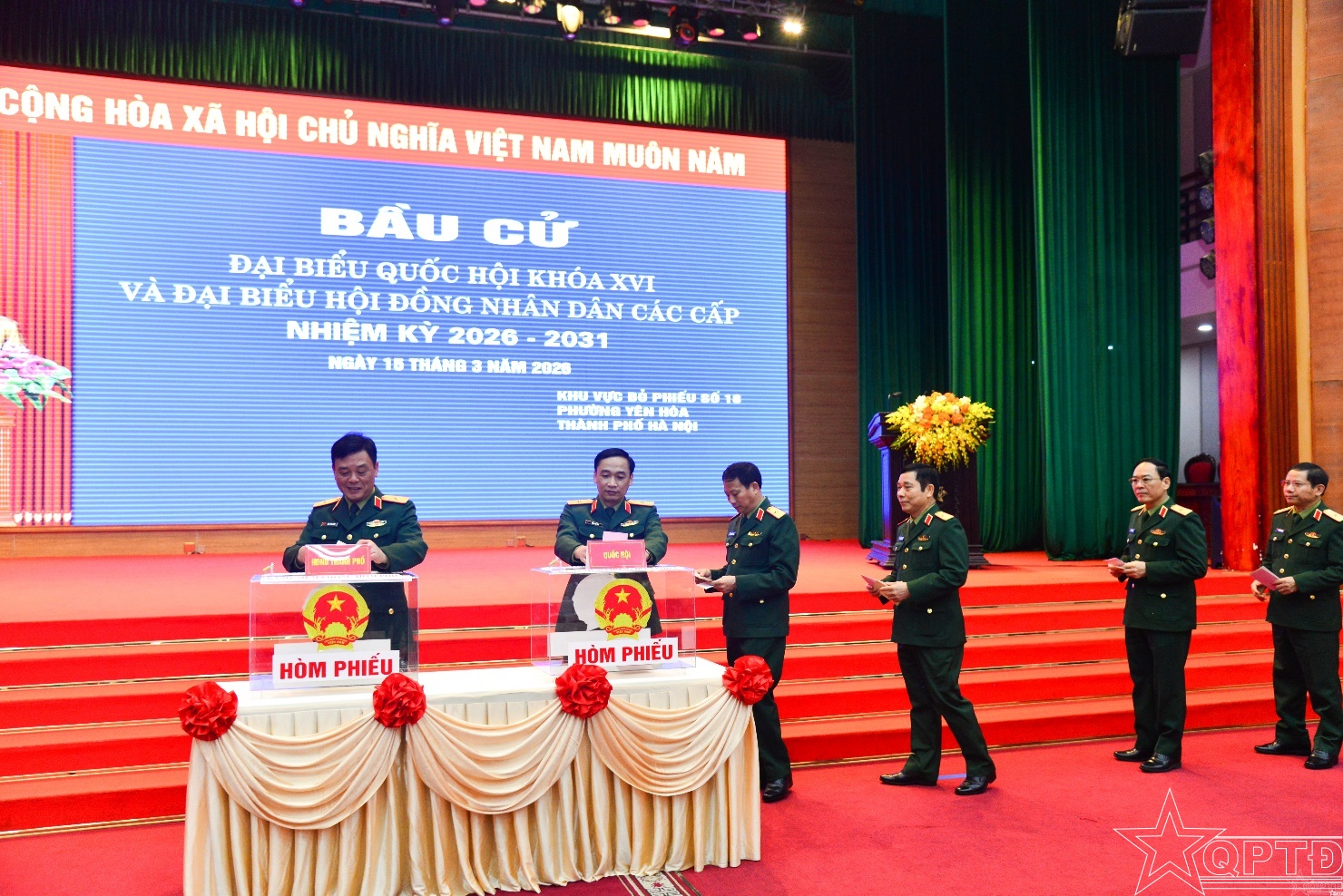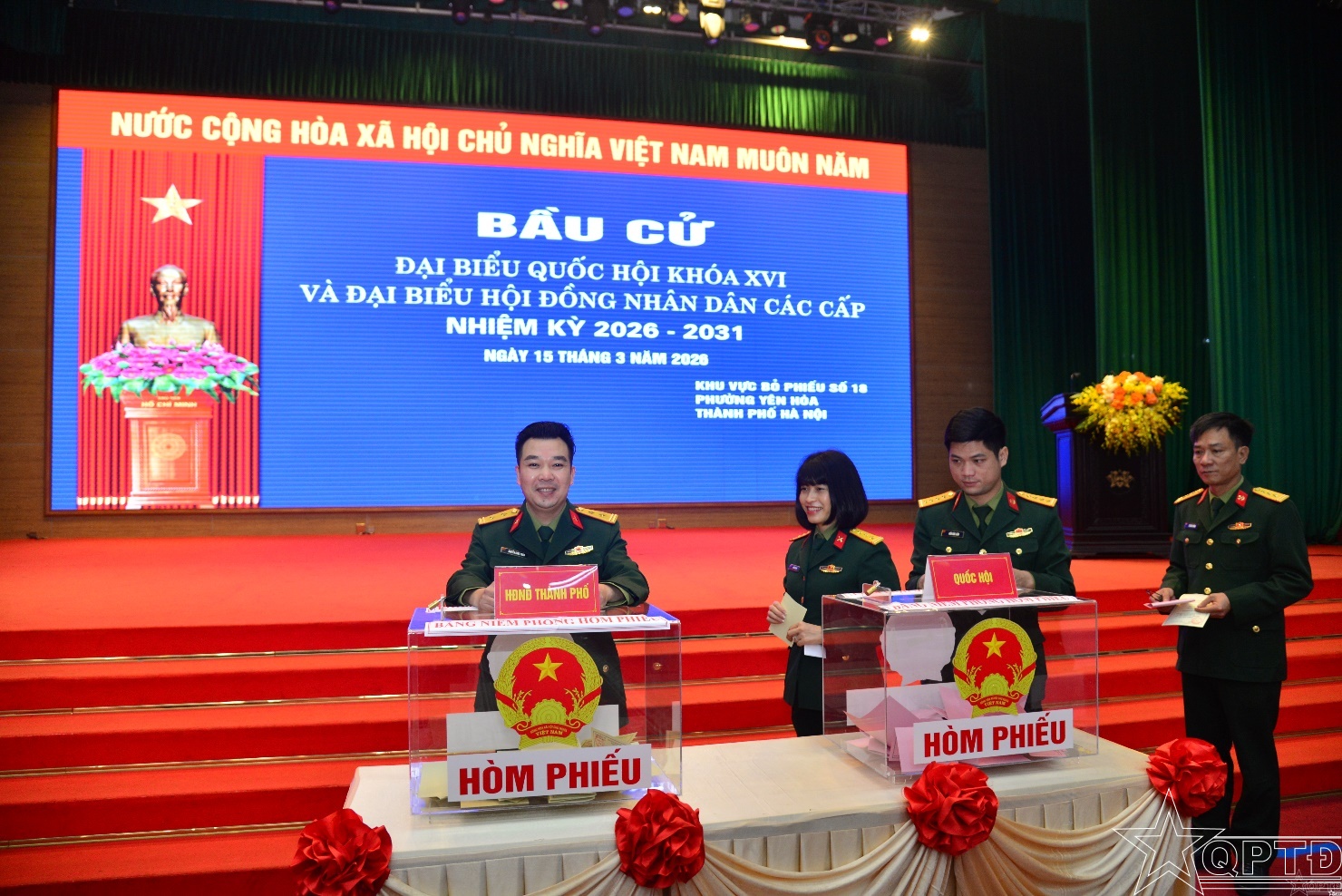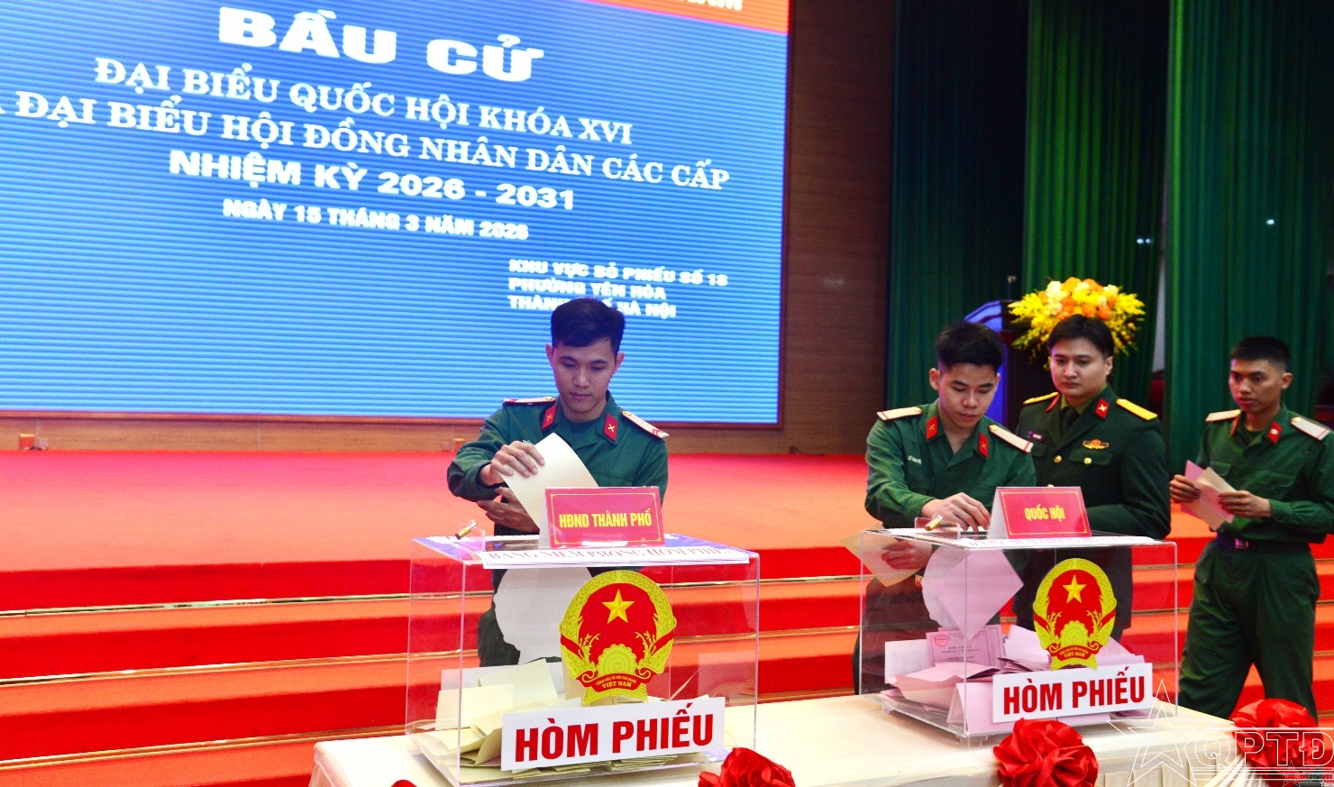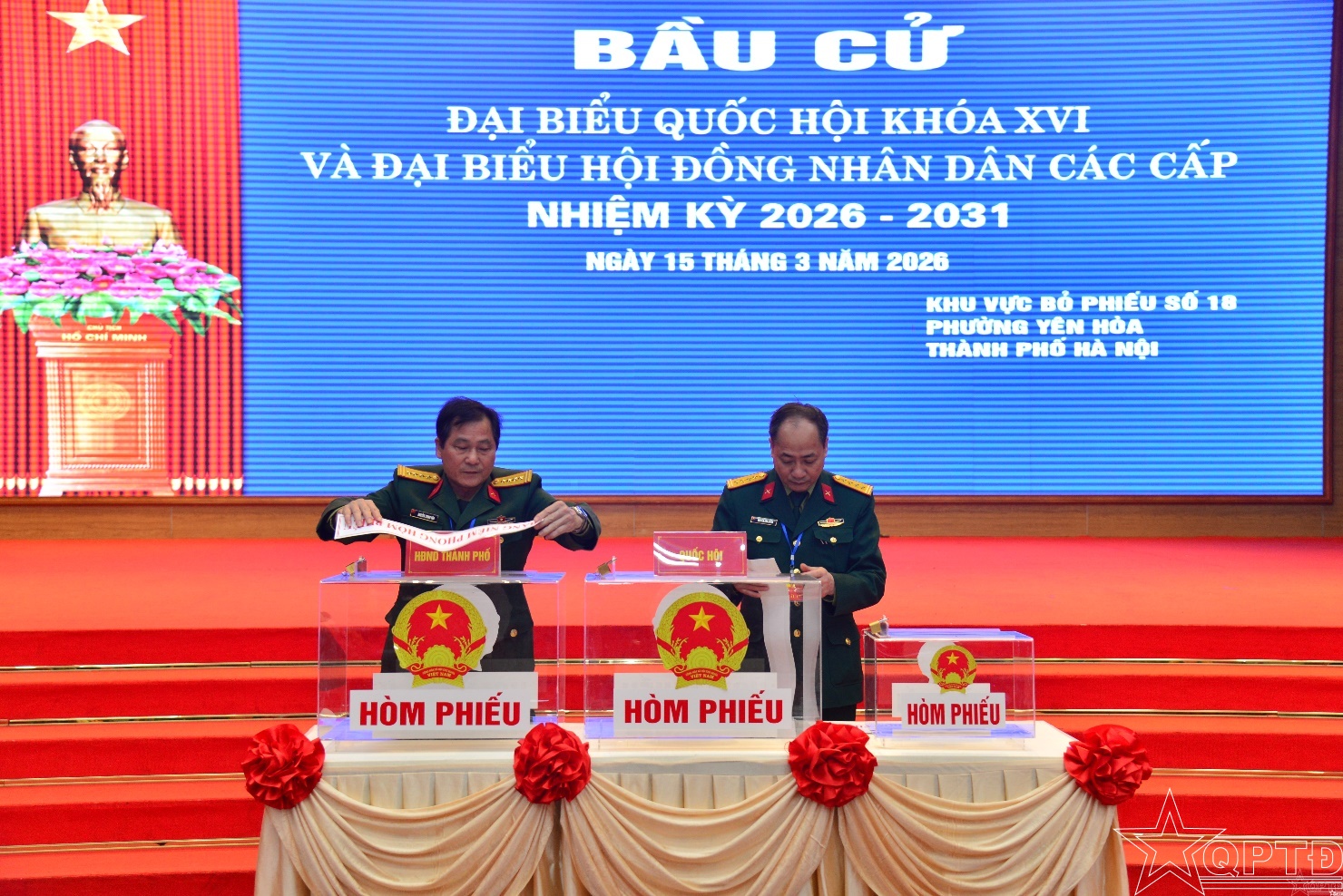 QPTĐ-Sáng 15-3, hòa chung không khí ngày hội của toàn dân trên cả nước, cử tri cơ quan Bộ Tư lệnh Thủ đô Hà Nội đã thực hiện quyền công dân, bầu cử đại biểu Quốc hội khóa XVI và đại biểu Hội đồng nhân dân (HĐND) các cấp, nhiệm kỳ 2026-2031 tại khu vực bỏ phiếu số 18, phường Yên Hòa, thành phố Hà Nội.