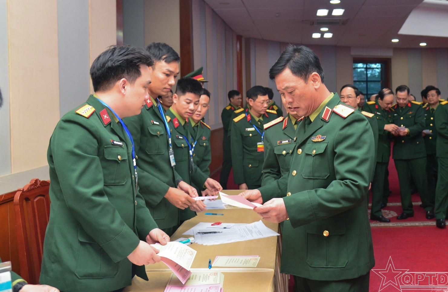 Các cử tri nhận phiếu bầu cử.