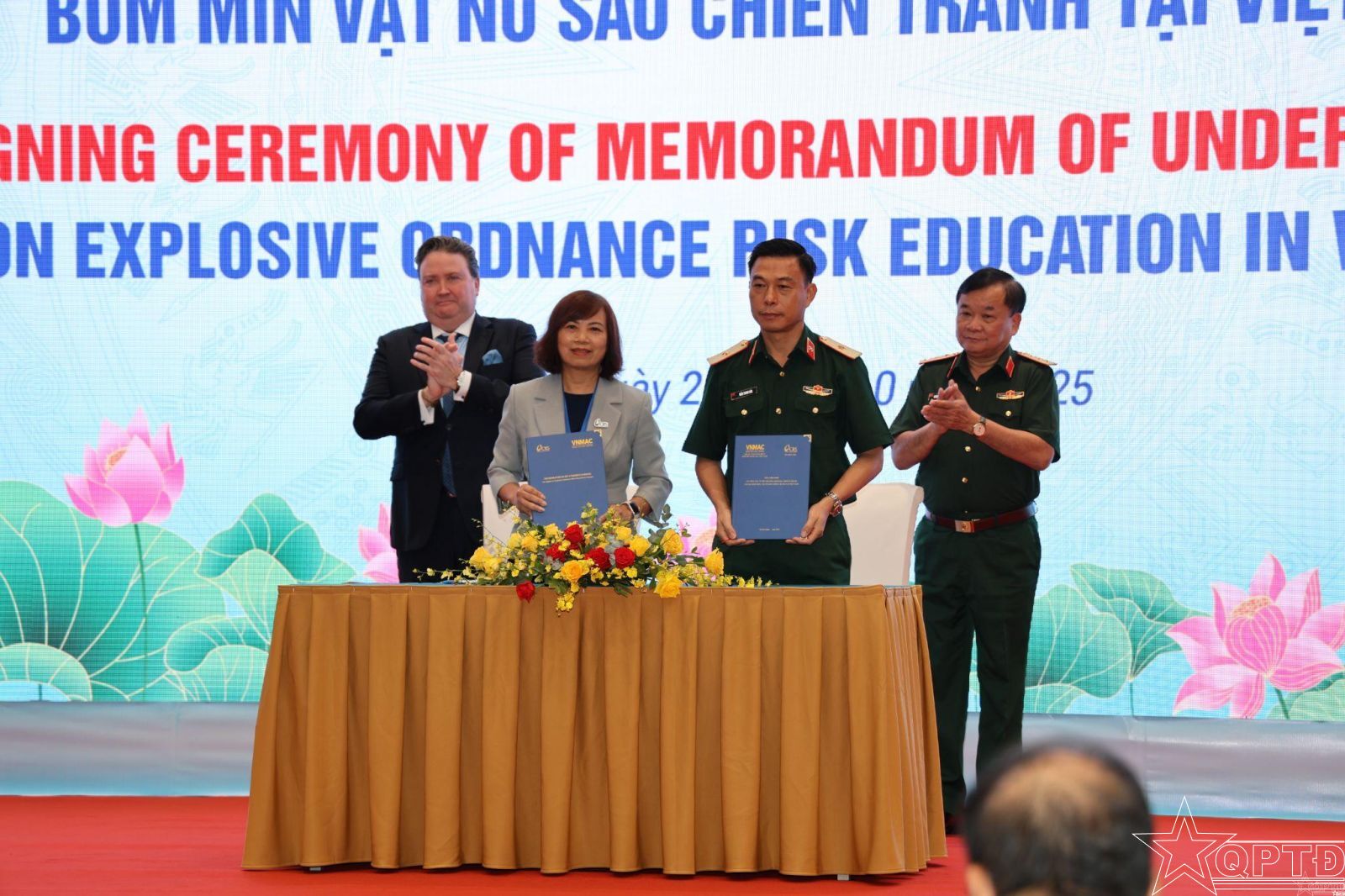 Theo đó, giai đoạn 2023-2024, dưới sự chỉ đạo của Bộ Quốc phòng, Cơ quan Thường trực Ban Chỉ đạo quốc gia khắc phục hậu quả bom mìn và chất độc hóa học sau chiến tranh ở Việt Nam, Trung tâm hành động bom mìn quốc gia Việt Nam (VNMAC) đã phối hợp chặt chẽ với các bộ, ngành, địa phương, các tổ chức quốc tế triển khai toàn diện các mục tiêu, nhiệm vụ của chương trình, kế hoạch khắc phục hậu quả bom mìn sau chiến tranh, đạt được những kết quả đáng khích lệ. Việt Nam đã chủ động tăng cường hợp tác quốc tế trong lĩnh vực khắc phục hậu quả bom mìn; kịp thời chia sẻ kinh nghiệm, tăng cường năng lực và vận động tài trợ với các đối tác như Chính phủ Hoa Kỳ, Nhật Bản, Hàn Quốc, Na Uy, Anh, Pháp, Hà Lan, Canada, Đức; các tổ chức quốc tế và tổ chức phi chính phủ như: Chương trình phát triển Liên hợp quốc (UNDP), Cơ quan hành động mìn Liên hợp quốc (UNMAS)...