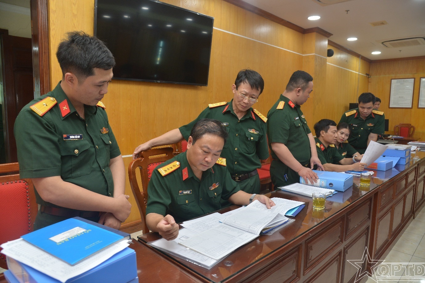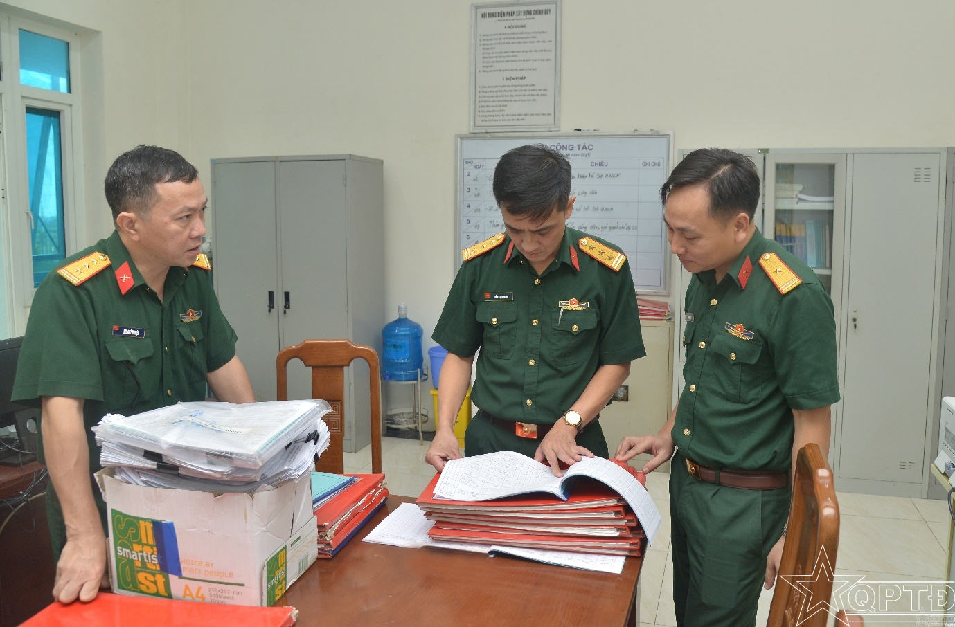 Kiểm tra sổ sách công tác quân lực tại Ban Chỉ huy phòng thủ khu vực 5-Thanh Oai.