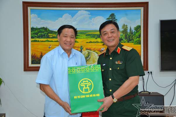 Đồng chí Tư lệnh Bộ Tư lệnh Thủ đô Hà Nội tặng quà động viên Trung tướng Lê Hùng Mạnh.