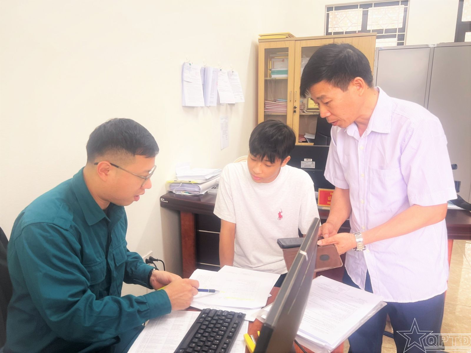 Cán bộ Ban CHQS cấp xã tận tình hướng dẫn thí sinh và người thân hoàn thiện các thủ tục, giấy tờ trong giai đoạn "nước rút".