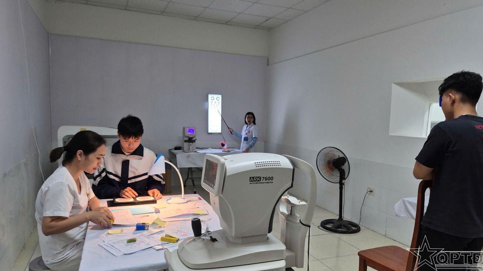 Cán bộ y tế kiểm tra kỹ lưỡng hồ sơ và sức khỏe chuyên khoa cho thí sinh tại điểm sơ tuyển cơ sở.
