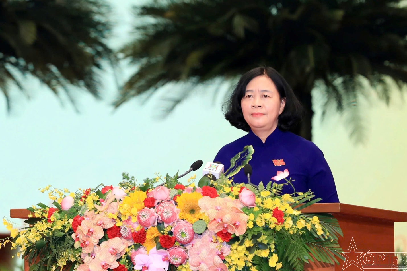Đồng chí Bùi Thị Minh Hoài, Ủy viên Bộ Chính trị, Bí thư Thành ủy Hà Nội phát biểu khai mạc Đại hội phiên trù bị.