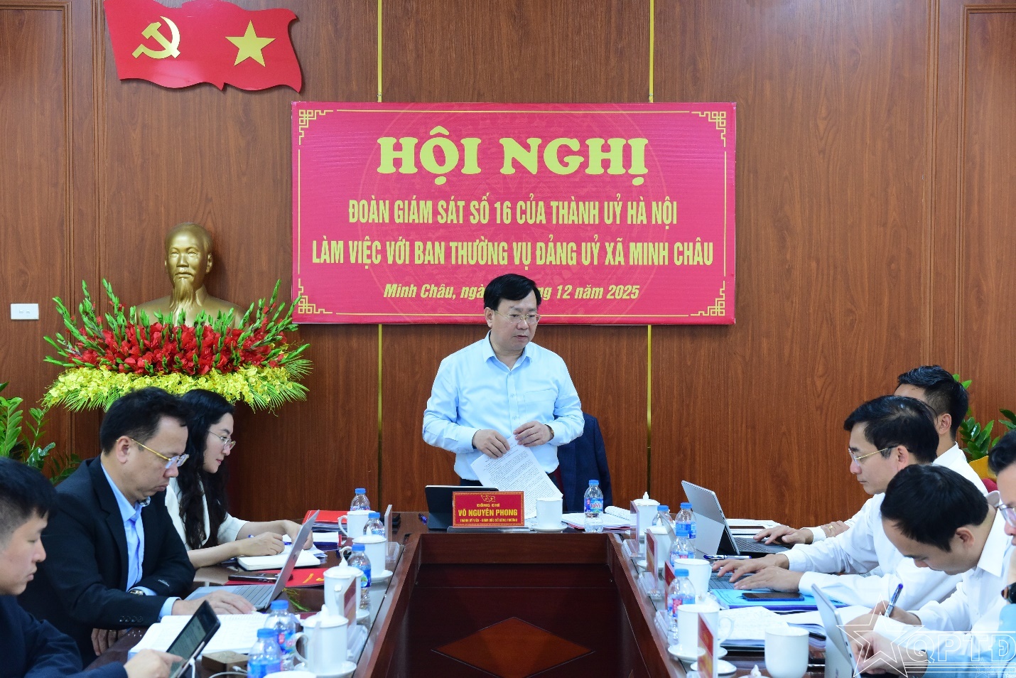 QPTĐ-Chiều ngày 11-12, Đoàn Giám sát số 16 của Ban Thường vụ Thành ủy Hà Nội do đồng chí Võ Hồng Phong, Thành ủy viên, Giám đốc Sở Công thương, Phó Trưởng đoàn đã làm việc với Ban Thường vụ Đảng ủy xã Yên Bài và xã Minh Châu để giám sát công tác lãnh đạo, chỉ đạo, tổ chức thực hiện một số chuyên đề trọng tâm, cấp bách gắn với công tác kiểm điểm năm 2025.