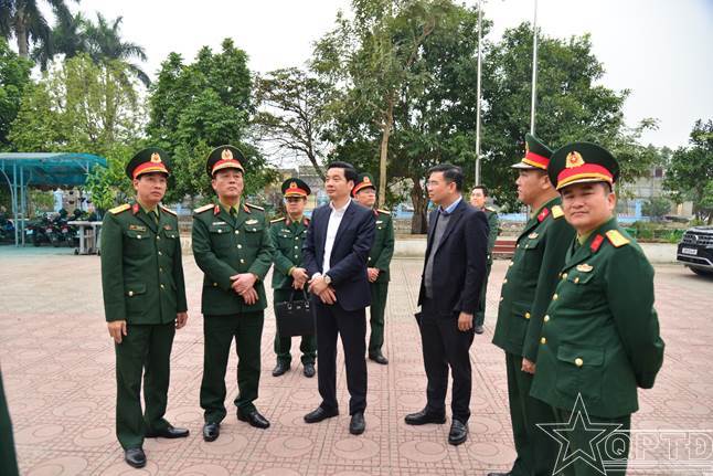 Thiếu tướng Đào Văn Nhận, Tư lệnh Bộ Tư lệnh Thủ đô Hà Nội thăm cán bộ, chiến sĩ Ban CHQS xã Phù Đổng.