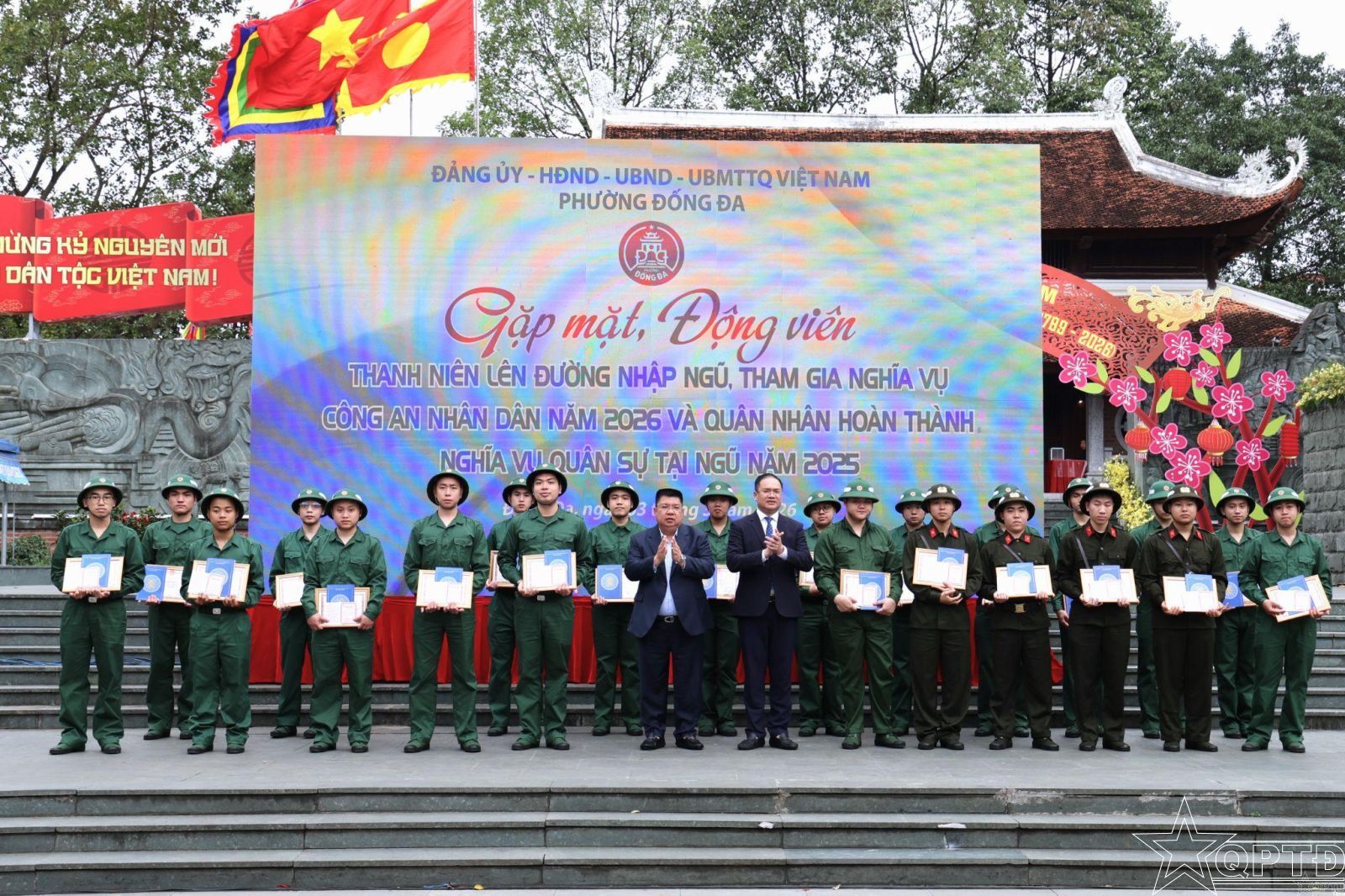 QPTĐ-Sáng 3-3, tại Di tích Quốc gia đặc biệt Gò Đống Đa, Đảng ủy, HĐND, UBND, Ủy ban MTTQ Việt Nam phường Đống Đa đã long trọng tổ chức chương trình Gặp mặt, động viên thanh niên lên đường nhập ngũ, tham gia nghĩa vụ Công an nhân dân năm 2026 và quân nhân hoàn thành nghĩa vụ quân sự trở về địa phương năm 2025.