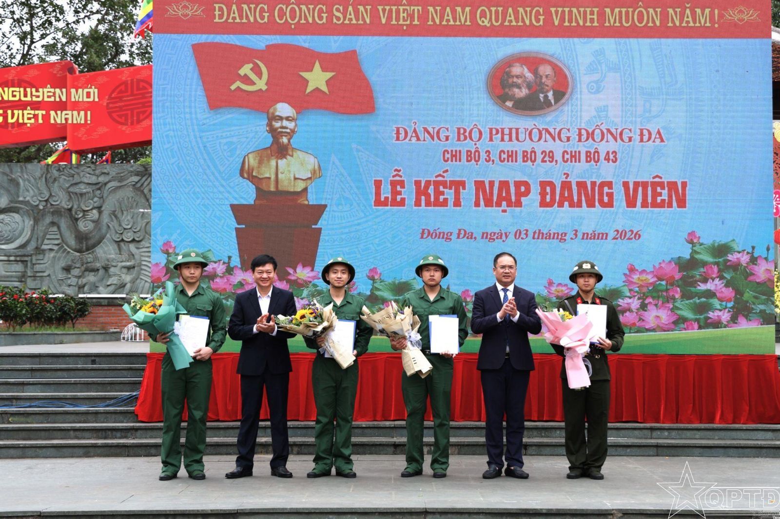 Cũng trong khuôn khổ chương trình, Đảng ủy phường tổ chức Lễ kết nạp Đảng cho 5 quần chúng ưu tú chuẩn bị lên đường nhập ngũ (Phạm Hồng Phúc, Phạm Thế Lợi, Phạm Quang Huy và 2 quần chúng ưu tú thuộc Chi bộ 29). Trong không khí thiêng liêng tại Di tích lịch sử, những đảng viên trẻ đã đọc lời tuyên thệ, nguyện phấn đấu, rèn luyện, xứng đáng với danh hiệu "Bộ đội Cụ Hồ", kế thừa và phát huy truyền thống cách mạng vẻ vang của dân tộc.