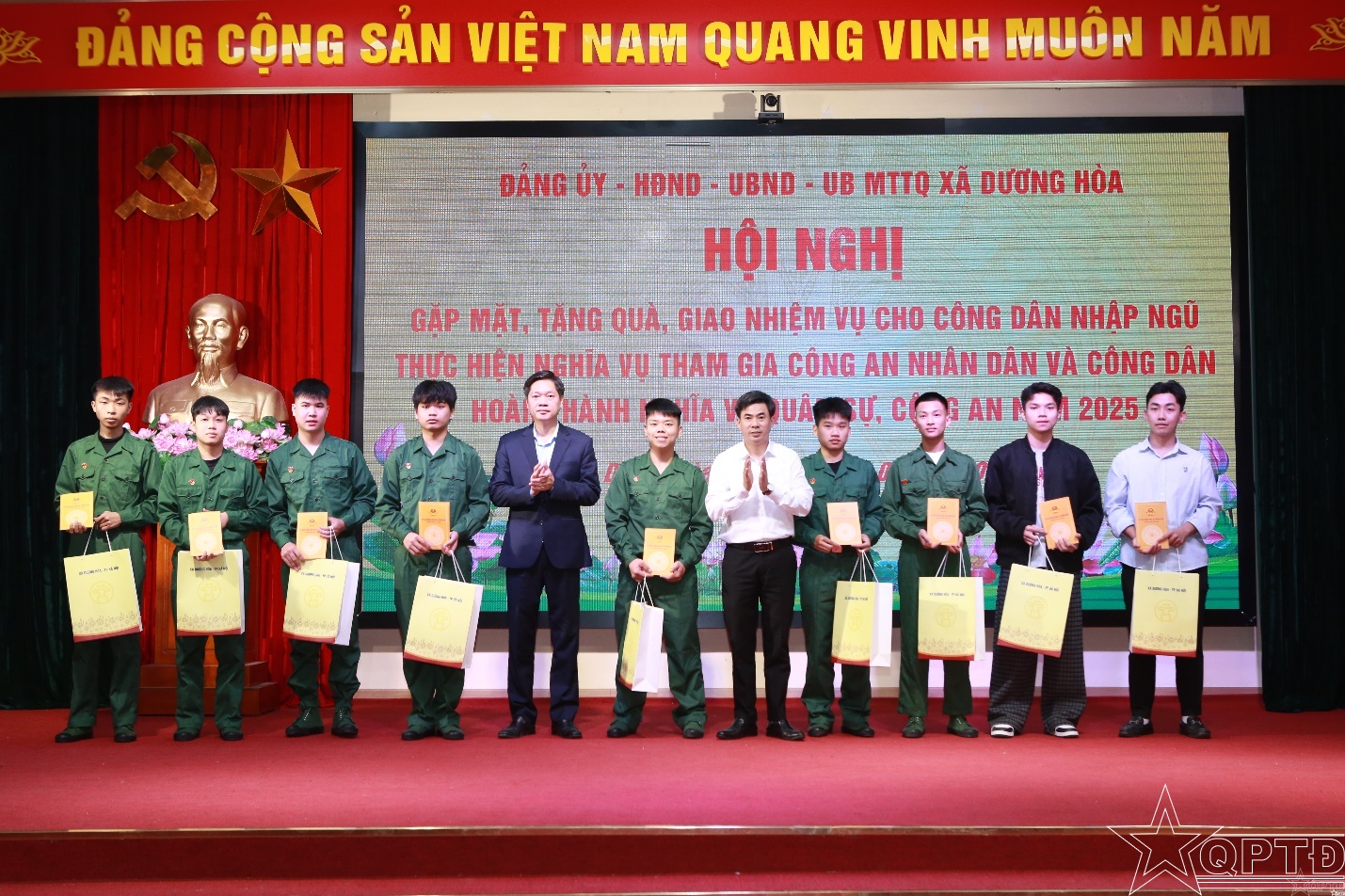 QPTĐ-Xã Dương Hoà đã tổ chức gặp mặt, tặng quà, giao nhiệm vụ cho công dân nhập ngũ, thực hiện nghĩa vụ tham gia Công an nhân dân và công dân hoàn thành nghĩa vụ quân sự, công an năm 2026.