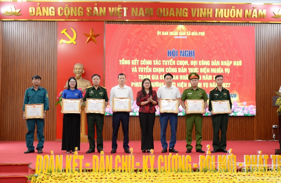 Trao giấy khen cho các tập thể tiêu biểu trong công tác tuyển quân năm 2026.