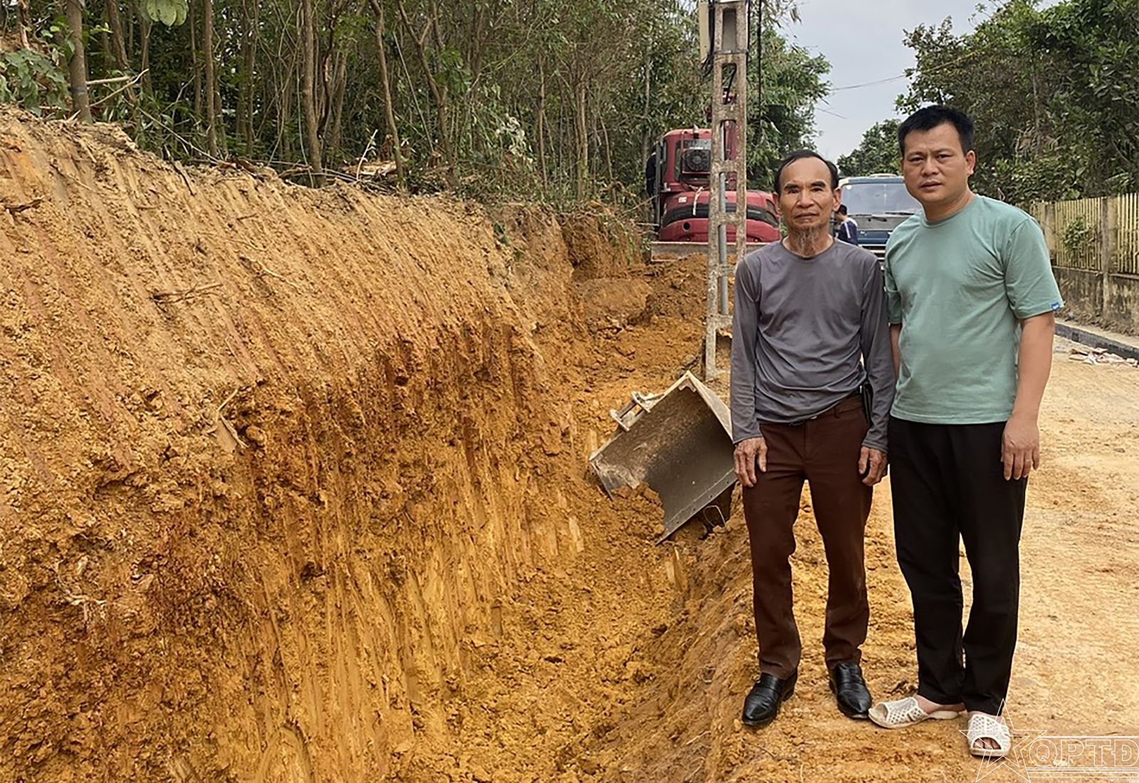 Ông Nguyễn Đăng Vui (bên trái) trên con đường liên thôn đang mở.